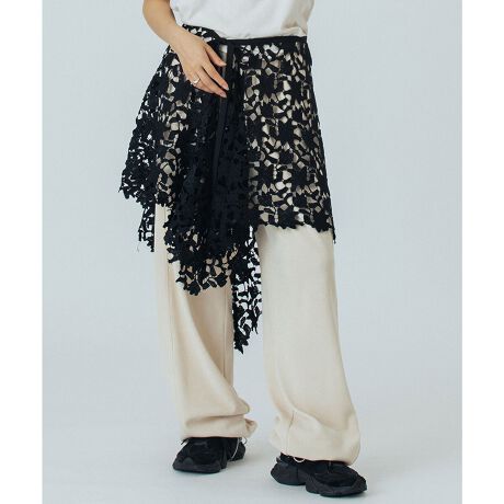 ・コーディネートに軽やかさと華やかさを添える、レースのラップスカート