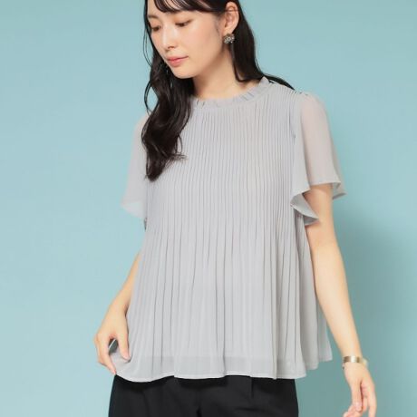 衿元のフリルがフェミニンなプリーツブラウス。