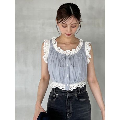 <b>【今季らしいバランスを叶えるコットンフリルが愛らしいクロップド丈ブラウス】</b>