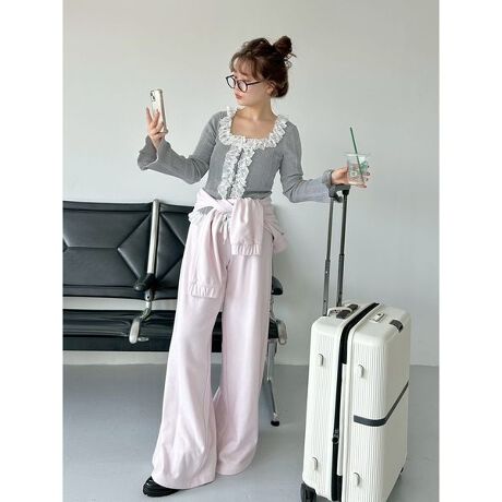 <b>【肌あたりの良い柔らかいスウェット生地で着心地良く仕上げた旅行にもおすすめのワイドパンツ】</b>