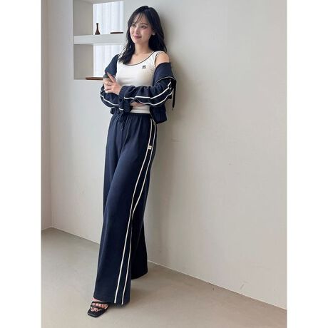 落ち感のある柔らかなスウェット生地でお作りしたスウェットワイドパンツです。薄手で落ち感のある柔らかい素材感にこだわりました。裏パイルで肌あたりの良いアイテムです。UVカット機能付き。着心地の良いワイドシルエットで、落ち感のある素材なので腰回り張って見えないのもポイントです。脇にSNIDELエンブレムロゴテープを添えて高級感を出しました。サイドには2本のラインを利かせてスポーティな仕上がりに。ウエストはゴムで、ドローストリングの紐で調節が可能です。同素材でお作りしているスウェットフーディーパーカー(SWCT254105)、そしてINにはパイピングディテールノースリタンク(SWCT254107)を合わせた今季らしいコーディネートがおすすめです。
