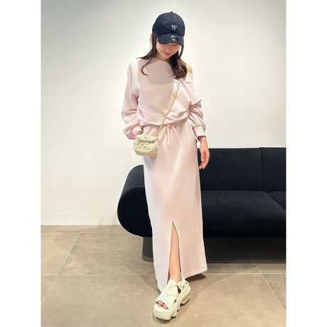 落ち感のある柔らかなスウェット生地でお作りしたリラクシーなタイトスカートです。薄手で落ち感のある柔らかい素材感にこだわりました。裏パイルで肌あたりの良いアイテムです。UVカット機能付き。スウェットフーディパーカー(SWCT254105)と同素材を使用しています。身体のラインに寄り添うタイトなシルエットで、フロントに長めのスリットを入れて抜け感を加えました。サイドには2本のラインを利かせてアクセントに。ウエストはゴムで、ドローストリングの紐で調節が可能です。脇にSNIDELエンブレムロゴテープを添えて高級感をプラス。ワンショルダースウェットプルオーバー(SWCT254106 )と合わせたコーディネートがおすすめです。サイドにポケットが付いています。