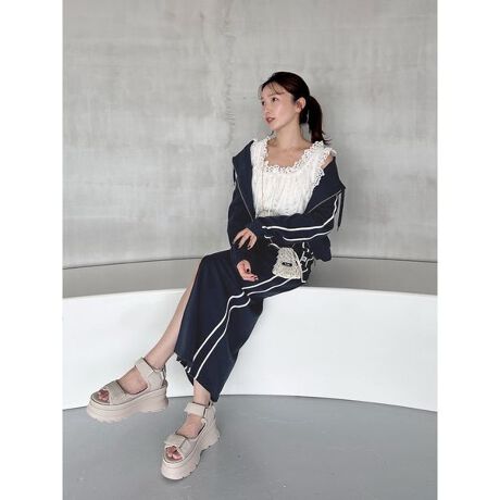 落ち感のある柔らかなスウェット生地でお作りしたリラクシーなタイトスカートです。薄手で落ち感のある柔らかい素材感にこだわりました。裏パイルで肌あたりの良いアイテムです。UVカット機能付き。スウェットフーディパーカー(SWCT254105)と同素材を使用しています。身体のラインに寄り添うタイトなシルエットで、フロントに長めのスリットを入れて抜け感を加えました。サイドには2本のラインを利かせてアクセントに。ウエストはゴムで、ドローストリングの紐で調節が可能です。脇にSNIDELエンブレムロゴテープを添えて高級感をプラス。ワンショルダースウェットプルオーバー(SWCT254106 )と合わせたコーディネートがおすすめです。サイドにポケットが付いています。