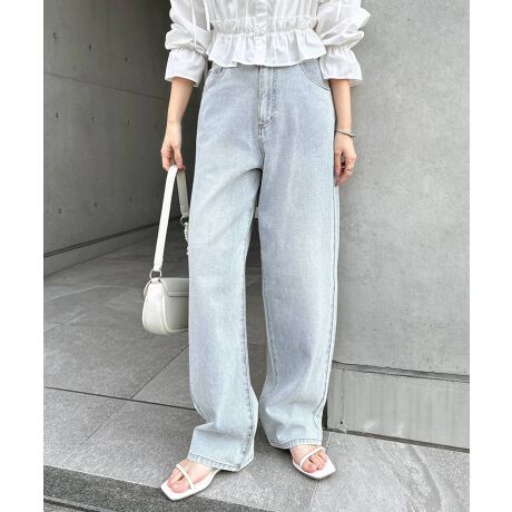 ラインストーン ストレート ワイド デニム パンツ Freesia フリージア