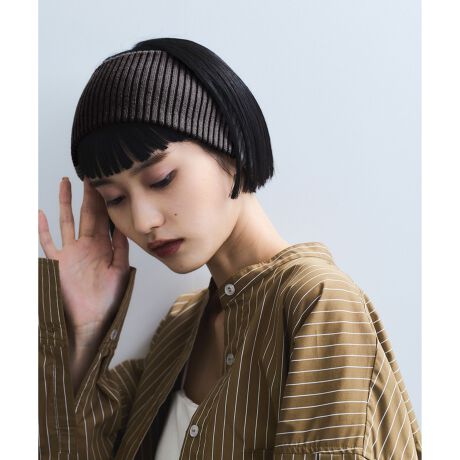 ソフトな風合いを残しつつ、度目を詰めて編み程よくボリュームを出したリブニットターバン。