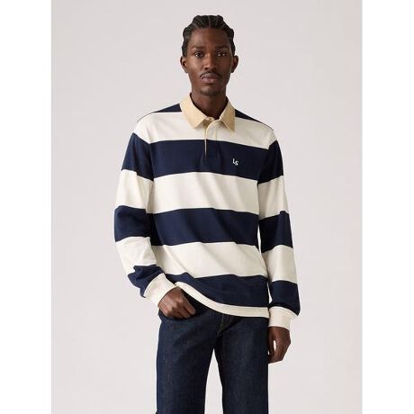 スポーティなLevi'sのラグビーシャツ。リラックスフィットのボタンアップカラー、どこかレトロな雰囲気を感じさせる配色のクラシックストライプのデザインです。アウターのインナーとして、春先には一枚でも活躍する一着です。 ※「(R)」のみが表記されたレッドタブは、LEVI'S(R)の文字が含まれるレッドタブと同様に製品不具合ではありません。不良品ではございませんので、交換・返品をお受けできません。また、タブの種類もお選びいただけませんので、予めご了承くださいませ。