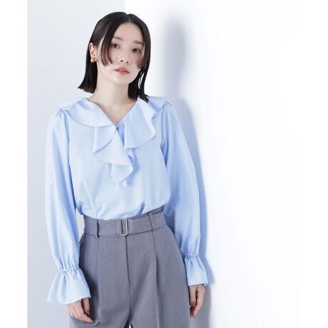 トレンドのラッフルカラーを取り入れたブラウス。ラッフルの形が決まるようにステッチを入れたデザインです。1枚着はもちろん、カーディガンからラッフル襟を出したりと、ONにもOFFスタイルにも活躍。袖はキャンディースリーブなので、寒い時期は袖口からフリルをのぞかせたレイヤードにもぴったり。シンプルなデザインなので着回し抜群です。<素材>キレイめ見えするブロード素材を使用。<詳細>仕様・開閉なし裏地・なし透け感・なし / 光沢・なし / 伸縮性・なし生地の厚さ・普通※モデルの着用画像の場合、光の当たり具合により、実際の色味と異なって見えることがございます。色味は、商品単体の画像をご参照ください。