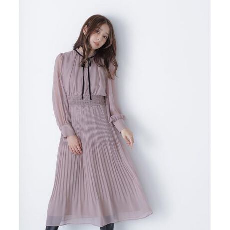 首元のベロアリボンがアクセントのシンプルなワンピース。フェミニンな雰囲気でリボン結びをしたり、紐を垂らして抜け感を出しても着られるデザインです。袖口はカフスにして甘さを抑えた仕様に。スカート部分は消しプリーツを入れて華奢に見せ、ウエストはシャーリングゴムでマークしながら、ゆったりとした着心地です。<素材>軽く柔らかい上品なシフォン素材を使用。<詳細>仕様・開閉なし裏地・あり透け感・ややあり / 光沢・なし / 伸縮性・なし生地の厚さ・普通※モデルの着用画像の場合、光の当たり具合により、実際の色味と異なって見えることがございます。色味は、商品単体の画像をご参照ください。