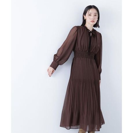 首元のベロアリボンがアクセントのシンプルなワンピース。フェミニンな雰囲気でリボン結びをしたり、紐を垂らして抜け感を出しても着られるデザインです。袖口はカフスにして甘さを抑えた仕様に。スカート部分は消しプリーツを入れて華奢に見せ、ウエストはシャーリングゴムでマークしながら、ゆったりとした着心地です。<素材>軽く柔らかい上品なシフォン素材を使用。<詳細>仕様・開閉なし裏地・あり透け感・ややあり / 光沢・なし / 伸縮性・なし生地の厚さ・普通※モデルの着用画像の場合、光の当たり具合により、実際の色味と異なって見えることがございます。色味は、商品単体の画像をご参照ください。