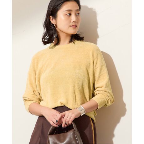 軽くて暖かく肌触りも優しいベロア調のニットはこれからのシーズン大活躍の一枚。