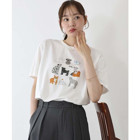 シンプルなデザインのTシャツに可愛らしいDOGプリントが加わり、目を惹くTシャツ。