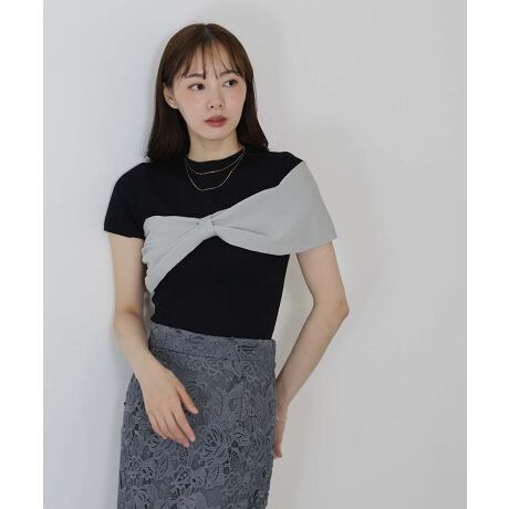 フロントの大きなリボンが華やかな印象を惹き立てるサマーニット。
