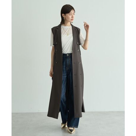 ボタンを閉めてワンピースとしてはもちろん、前を開けてロングジレとしても着用可能な2way仕様です。