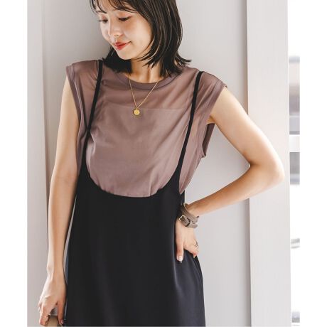 NOBLEの定番人気のシアースキニー素材を用いたノースリーブトップス。