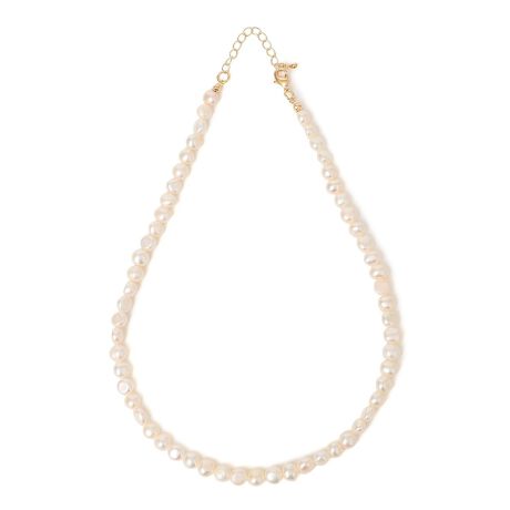 さりげなく華やかさを添える、約8ミリの淡水パールを使用したネックレス。