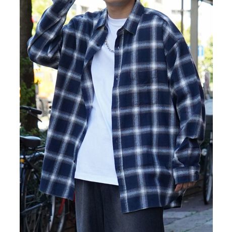 ILL'S ソフトコットン オンブレチェック ネルチェック ビッグシルエットシャツ