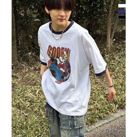 ILL'S Disney ヴィンテージライクプリント グーフィー リンガー半袖Tシャツ