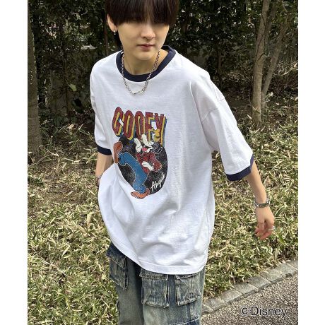 ILL'S Disney ヴィンテージライクプリント グーフィー リンガー半袖Tシャツ