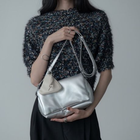 ショルダー部分に三角形のミニウォレットが付いており、機能性を高めつつスタイルに遊び心を添えます。