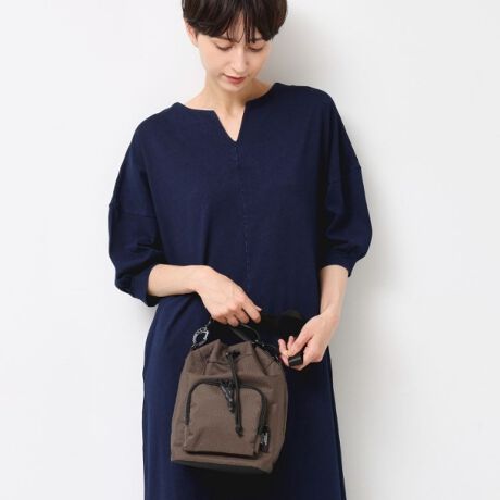 耐久性に富んだリップストップ素材を使用した巾着型のショルダーバッグ。