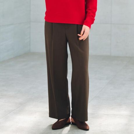 ストレートワイドのシルエットがきれいなパンツで、センタープレスですっきり。