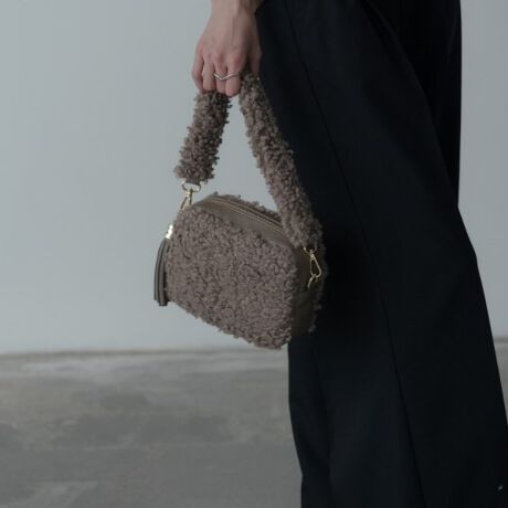 ふわふわとしたカーリーなフェイクファー×レザーのコンビがトレンド感のあるバッグ。