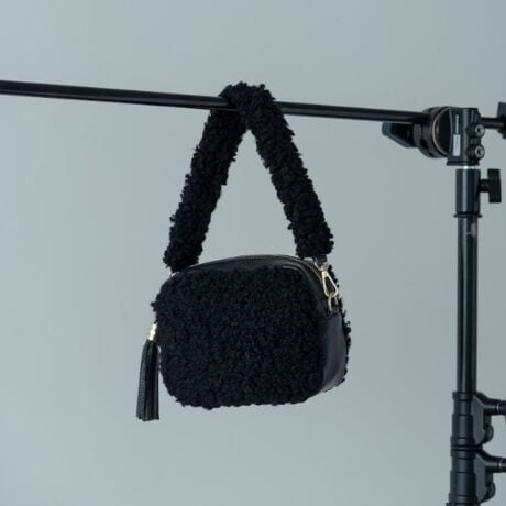 ファーをあしらったショートストラップとレザーのロングストラップ付きで、持ち方を変えて楽しんでいただけます。