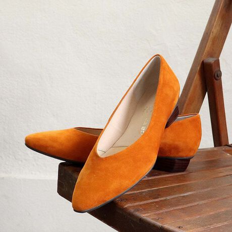 シャープすぎないVカットと、やや深めの足入れが生むほどよいホールド感。アウトソールは返りがよく、歩くたびにしなやかに足にフィット。
