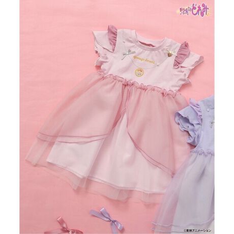 ふわっと広がるチュールがかわいいワンピースはピンクとパープルの2色展開。