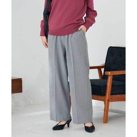 ◆裏起毛美ラクるスッキリ見えイージーストライプワイドパンツ:K2LAD17054