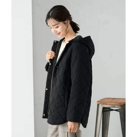 ◆ふっくらしたシルエットが女性らしいフード付きキルトコート◆