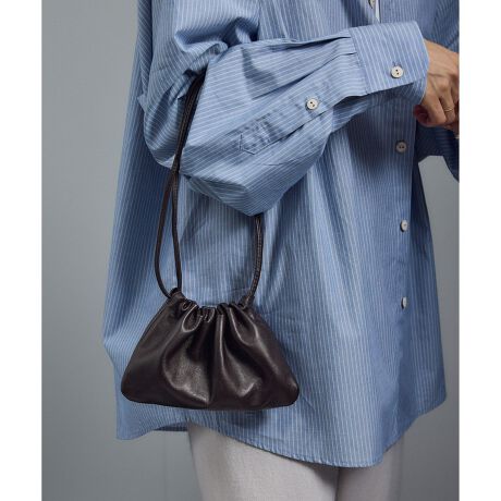ミニマルなデザインの巾着型ショルダーバッグ。