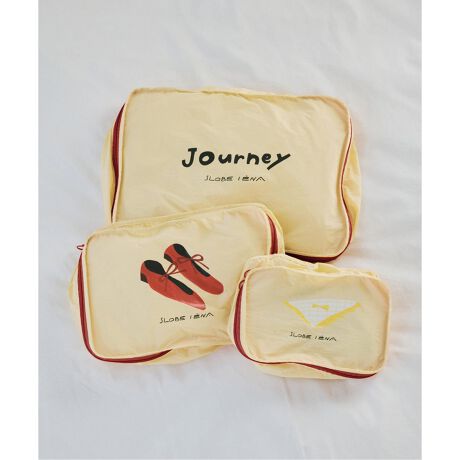 ・パッキング作業が楽しくなるようなHAPPYなイラストと配色で仕上げたパッキングポーチセット。