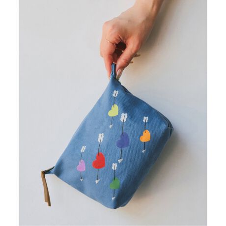キュートなグラフィックが引き立つキャンパス生地のポーチ。