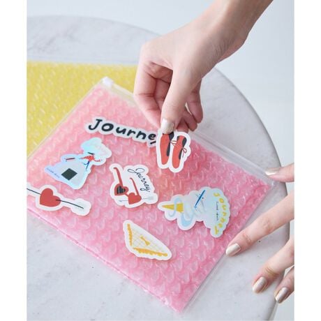 ・プチプチ素材のクリアポーチとステッカーがSETになった