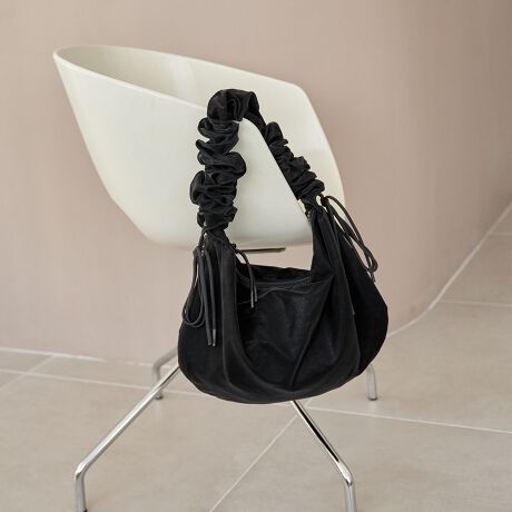 たっぷりのギャザーを施したハンドルが特徴のショルダーバッグ。