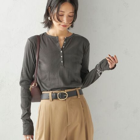 millerで人気のシアー素材を使用した、SHIPSだけのヘンリーネックシアーロンT。