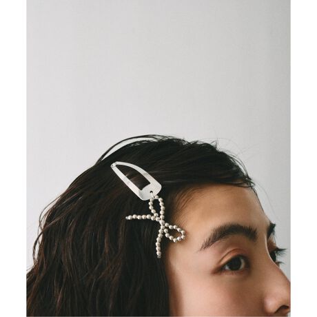 パッチンピンにリボンが付いて、着用時は垂れるような仕様です。