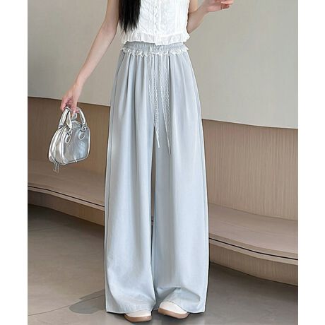 ウエスト部分の繊細なレースディテールと細めのリボンがガーリーさを演出。