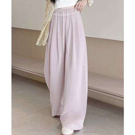 ウエスト部分の繊細なレースディテールと細めのリボンがガーリーさを演出。