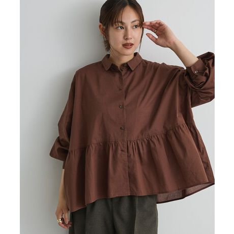 裾に動きがあるから、前だけタックインしてもサマになり、1枚で着映えが叶う万能ブラウスです。