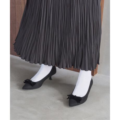 上品な起毛感のベルベットリボンが秋ムードのあるパンプス。
