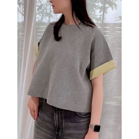 折り返した袖がアクセントになり、シンプルながら鮮度の高い印象で着こなせる一枚。単品でも、コーディネートを旬な装いに導いてくれます。