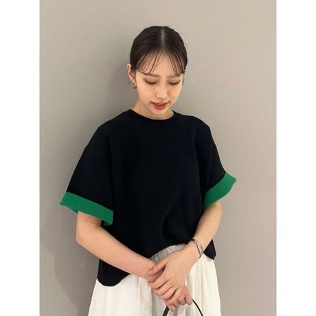 折り返した袖がアクセントになり、シンプルながら鮮度の高い印象で着こなせる一枚。単品でも、コーディネートを旬な装いに導いてくれます。