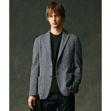 尾州産のオリジナルジャージー素材使用綿・ポリエステル・和紙の3種類の糸を組み合わせて編み上げた、深みのあるメランジカラーと独特の編み模様が魅力の素材です。肌にやさしく快適な着心地生地の裏側にポリエステル糸を配置することで、肌から生地が離れやすく、さらっとした着心地を実現しました。機能性と扱いやすさを備えた万能素材軽くて伸びがよく、速乾性やシワになりにくさも兼ね備え、家庭で洗濯できるイージーケア素材です。