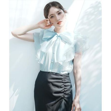 【王道の大人フェミニンスタイルを完成させる、フリル×ボウタイシアーブラウス】【Point】・一枚で簡単に着映える王道の大人フェミニンブラウス。・フリルに施されたホワイトのパイピングが着こなしにアクセントと清涼感をプラスします。・存在感のあるリボンと、袖のフリルがロマンティックな着こなしに仕立てます。・フロントと袖口のパールボタンが上品な印象に。・身頃部分は裏地が付いているため、インナーの透けや着こなしに悩まず着用いただけます。ケア方法:手洗い可能透け感:あり裏地:身頃部分あり伸縮性:なし光沢感:微光沢生地の厚さ:薄手