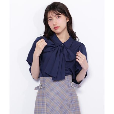 顔まわりを華やかに彩る、大ぶりリボンが主役のボウタイブラウス。ボリュームのあるリボンが、スタイリングにエレガントなアクセントを加えます。リボンタイは取り外し可能。ジャケットやジャンスカのインナーとしても映えるデザインで、フォーマルにもデイリーにも着回せます。※撮影時照明の関係により、色味が違って見える場合がございます。またパソコン・スマートフォンなどの環境により、若干製品と画像のカラーが異なる場合もございます。予めご了承ください。商品の色味は、商品単品画像をご参照下さい。※商品画像はサンプルのため、色味やサイズ等の仕様に変更がある場合がございますので、予めご了承ください。