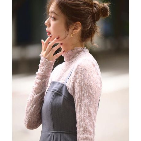 表面にポコポコとした凹凸があるストレッチレースを使用したシアートップス。襟ぐり・袖口・後ろに入れた、メローフリルがポイントです。インナーに困らない、同色のカットソーキャミソール付き。キャミワンピやジレのインナー、1枚着としてパンツを合わせてヘルシーにも着られます。スウェットやニットと重ね着をして、首や袖口からレースをのぞかせるのもオススメ。合わせやすい黒とホワイトのベーシックカラーと、秋冬らしいオリジナルのピンクカラーを揃えています。※撮影時照明の関係により、色味が違って見える場合がございます。またパソコン・スマートフォンなどの環境により、若干製品と画像のカラーが異なる場合もございます。予めご了承ください。商品の色味は、商品単品画像をご参照下さい。※商品画像はサンプルのため、色味やサイズ等の仕様に変更がある場合がございますので、予めご了承ください。