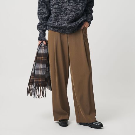 適度な緩さがありながら、すっきりと見えるレッグラインが魅力のワイドパンツ。
