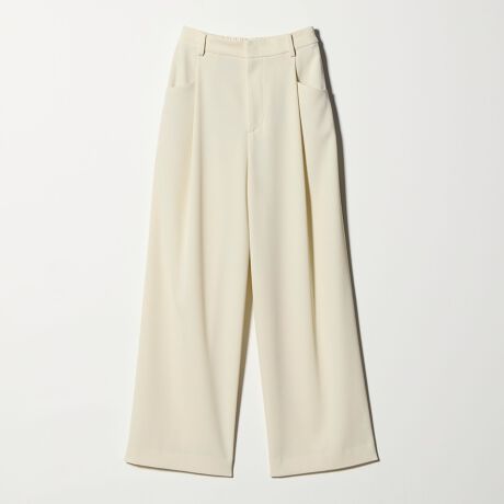 適度な緩さがありながら、すっきりと見えるレッグラインが魅力のワイドパンツ。